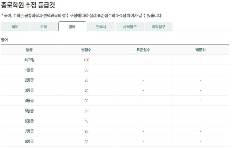 아래 사이트에서 모의고사 등급컷을 알 수 있으니 확인해 보시기 바랍니다.